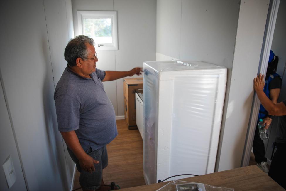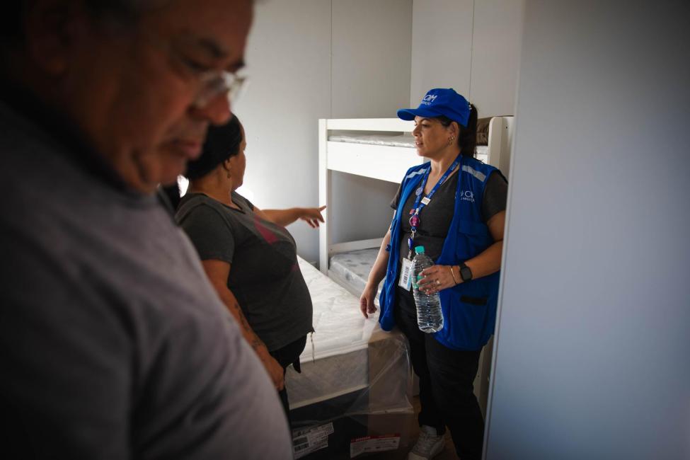Com 27m², as unidades são compostas por dormitório, sala e cozinha conjugadas, banheiro, mobiliário sob medida e eletrodomésticos. Durante o processo de realocação, a OIM oferece a logística das mudanças e o provimento imediato de cestas básicas e kits de higiene e limpeza. Além disso, tem oferecido apoio financeiro para compra de mobiliário, utensílios para as novas residências e, a depender da composição familiar, é ofertado um vale-alimentação que pode ser utilizado no período de três meses.
